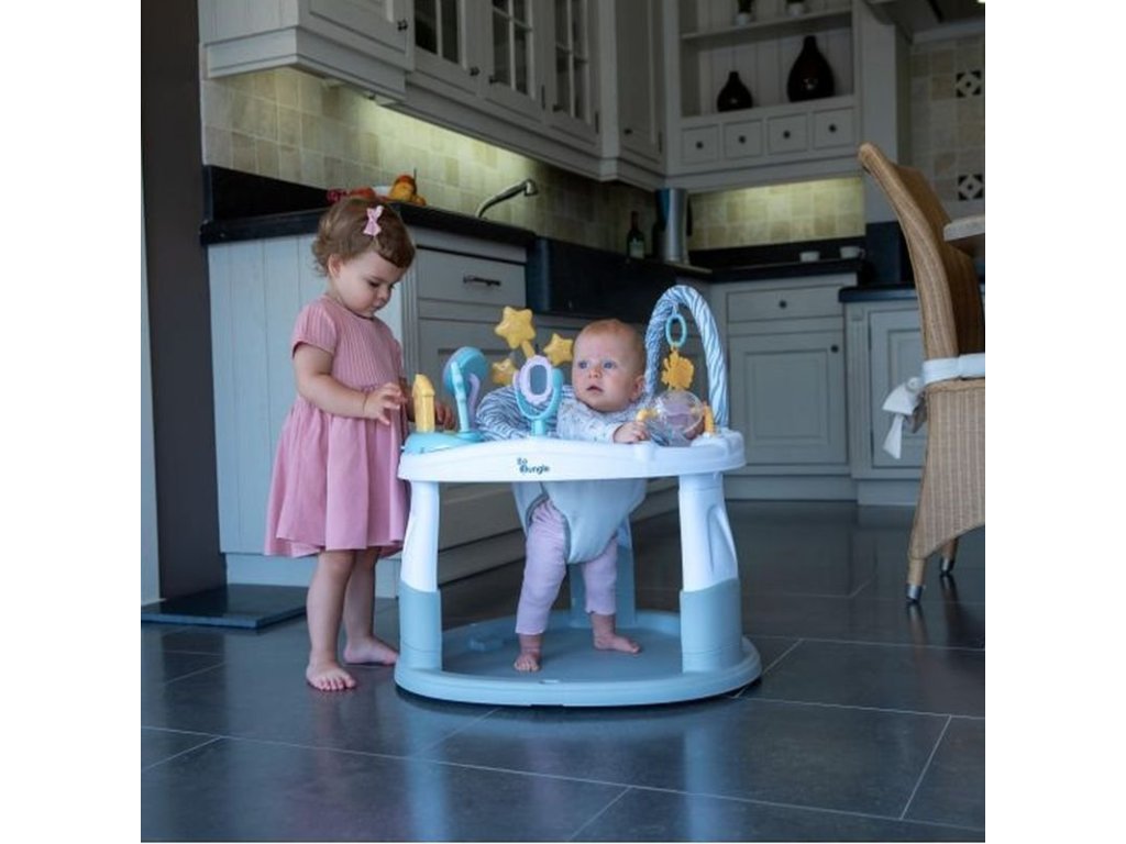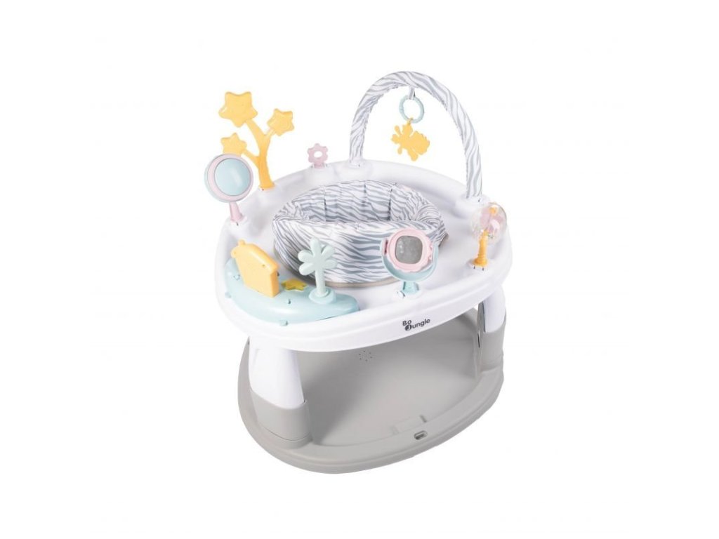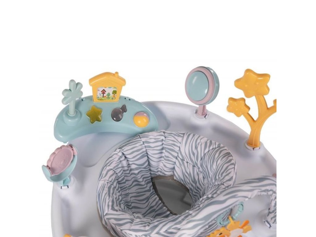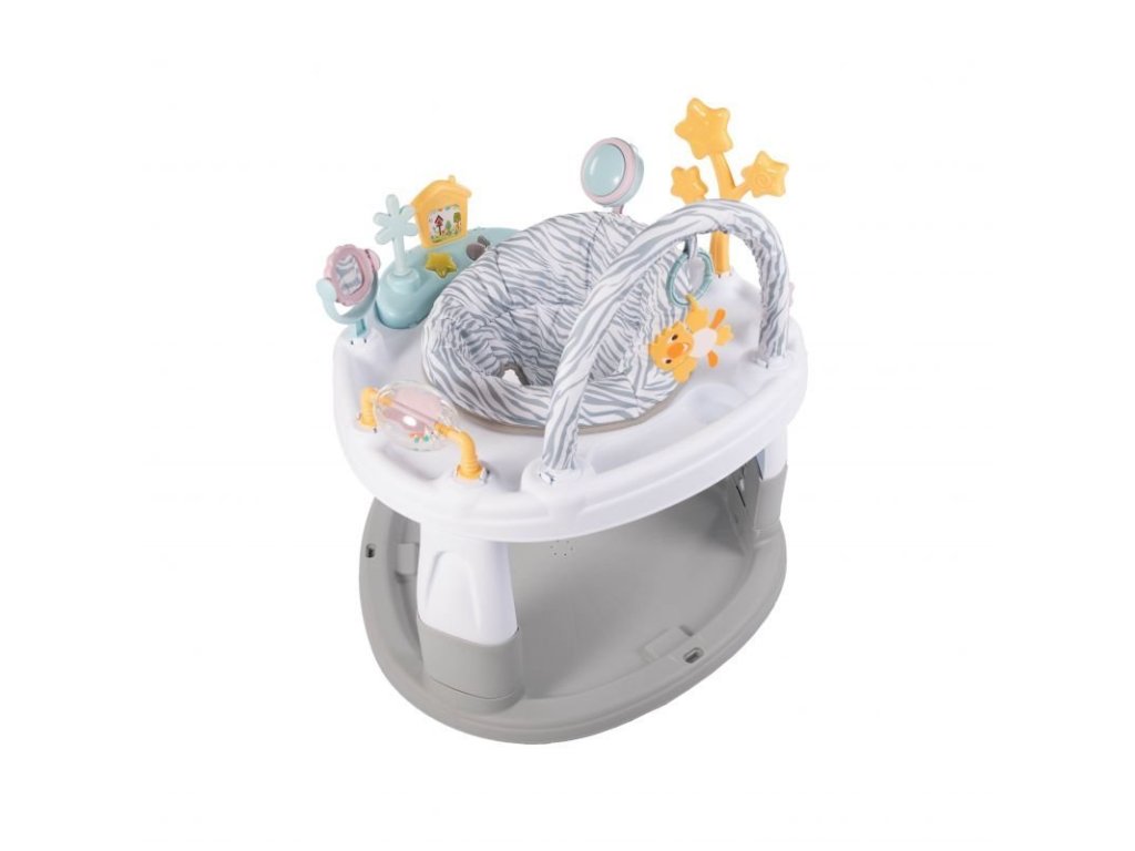 Vaše dieťa zaujme 360° otočné sedadlo, ktoré mu umožní jednoduchý prístup ku všetkým hračkám okolo. Zábavu zabezpečuje hudobný panel s veselými melódiami a svetelnými efektmi, rotujúca guľa s korálkami, veľké tlačidlo, ozubené koliesko, hrkálky, hviezdičky a dokonca aj zrkadielko, ktoré podporuje sebauvedomovanie.