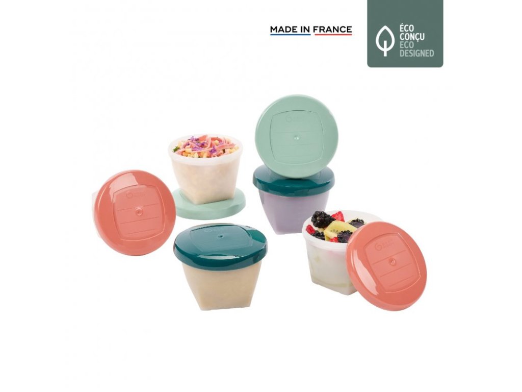 Vyrobené vo Francúzsku z HDPE plastu bez BPA, PVC a ftalátov, misky sú bezpečné pre najmenšie deti už od narodenia.