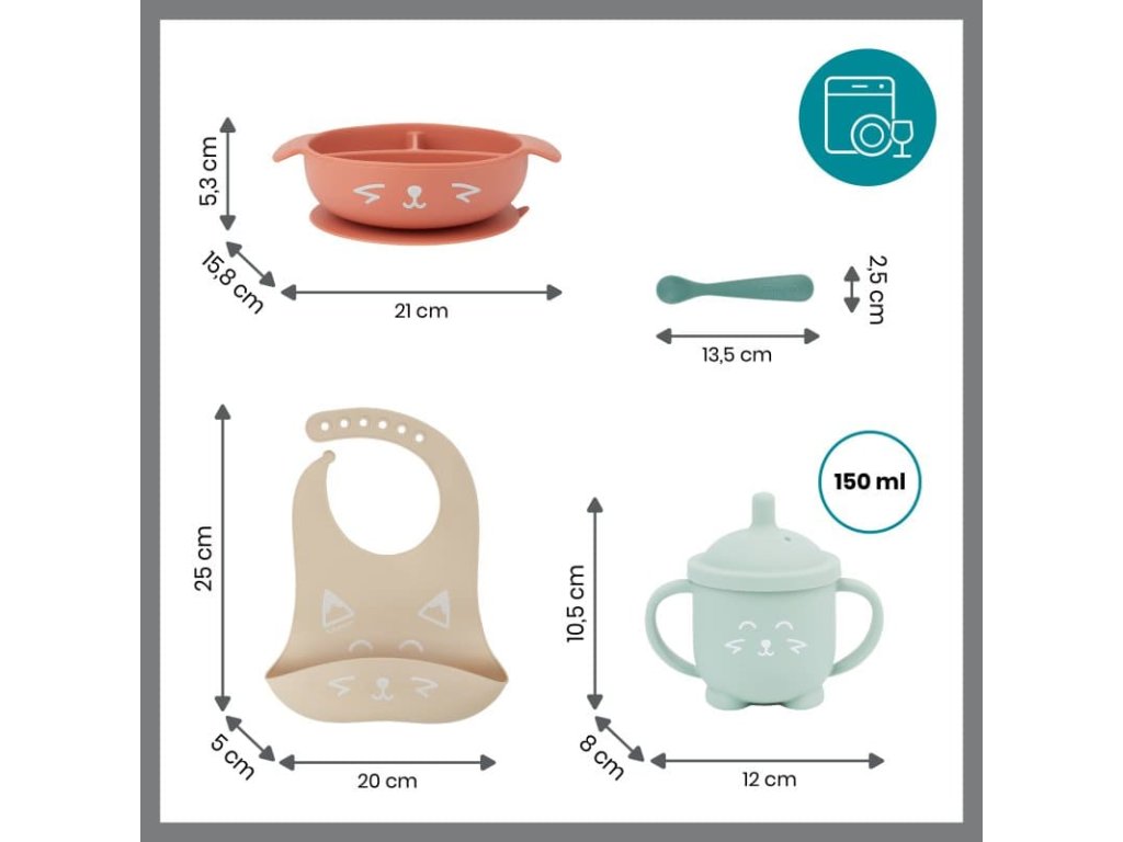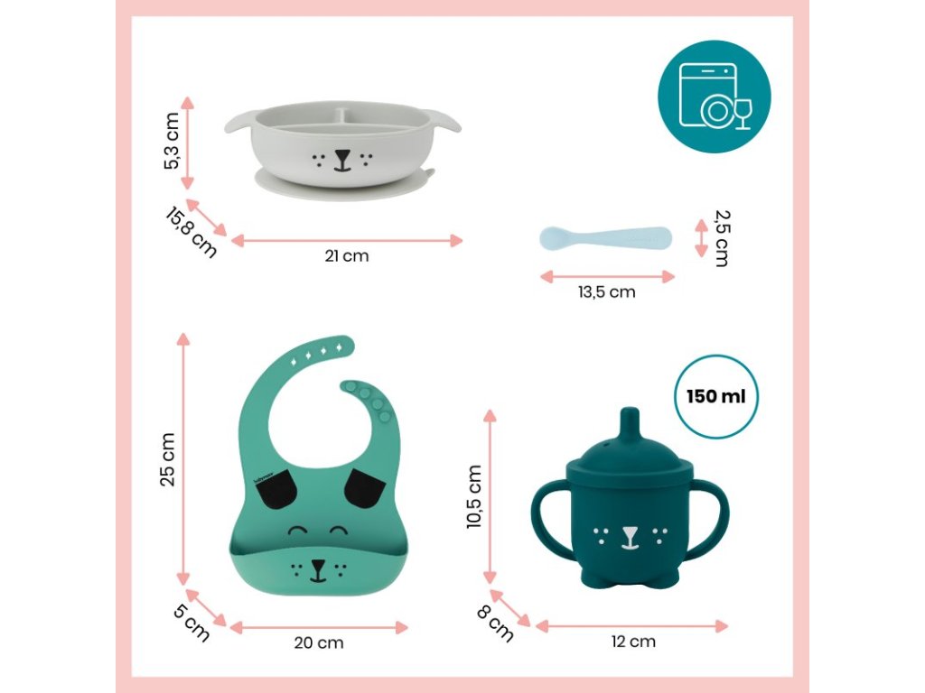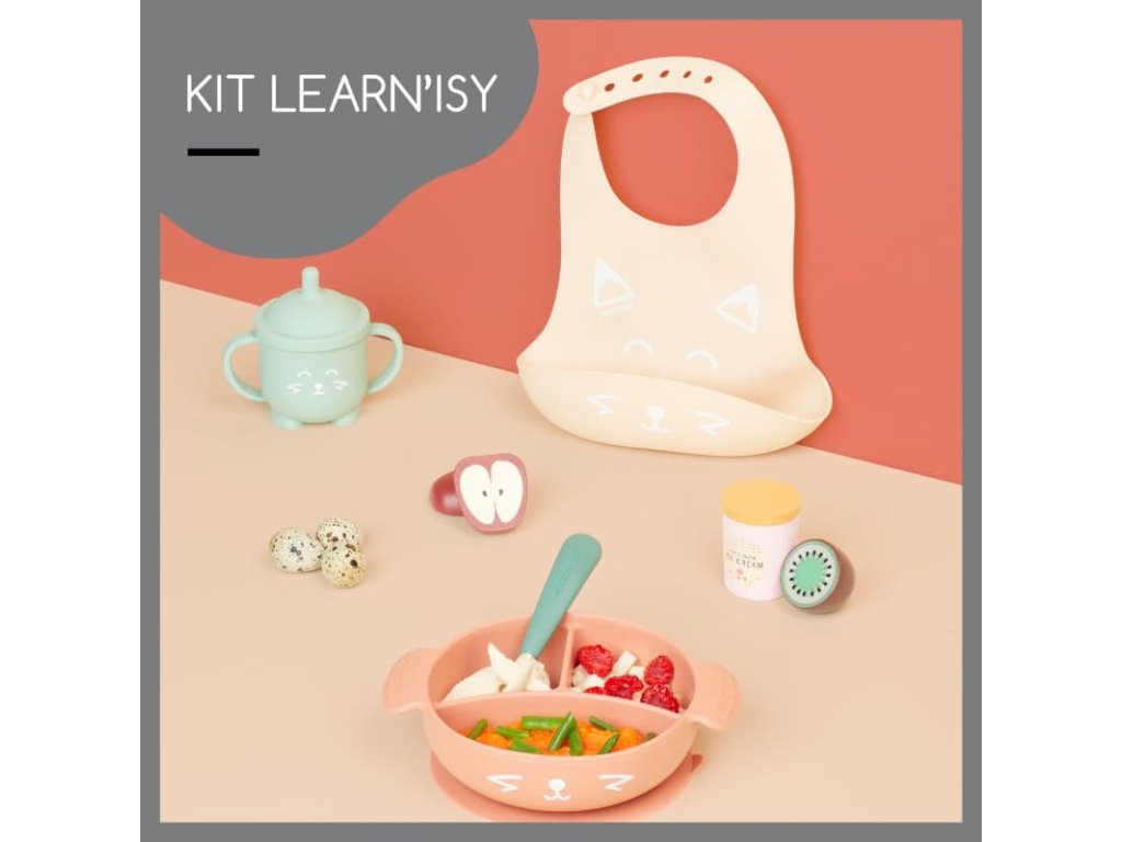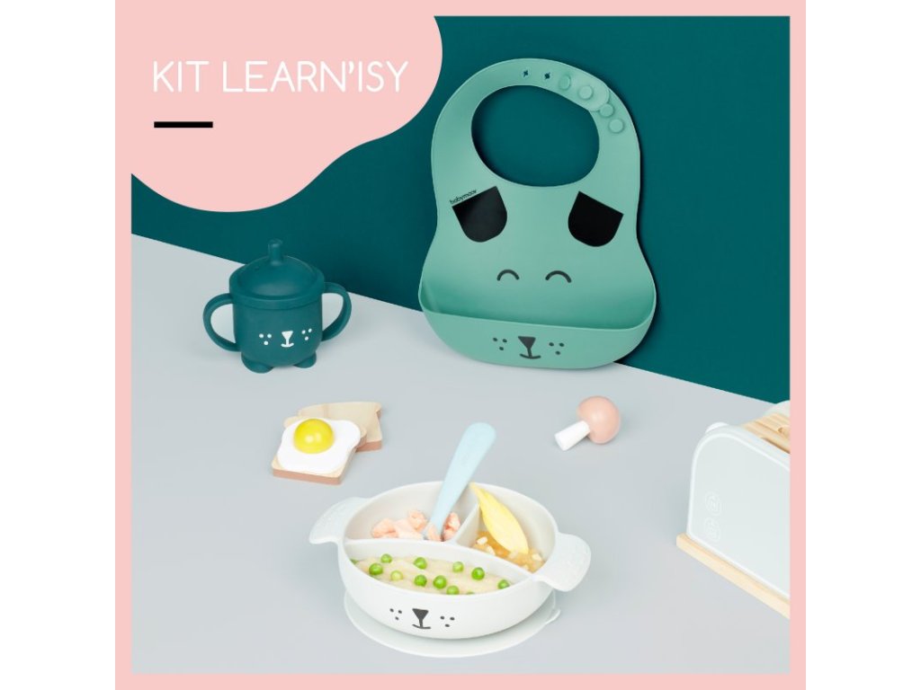 Jedálenská súprava LEARN’ISY KIT je špeciálne navrhnutá pre deti vo veku od 15 do 24 mesiacov, ktoré sa učia jesť samostatne a objavujú nové chute. Vďaka mäkkému, bezpečnému a pružnému 100% potravinárskemu silikónu je každý prvok sady nielen praktický, ale aj mimoriadne šetrný k detským ďasnám a citlivej pokožke.