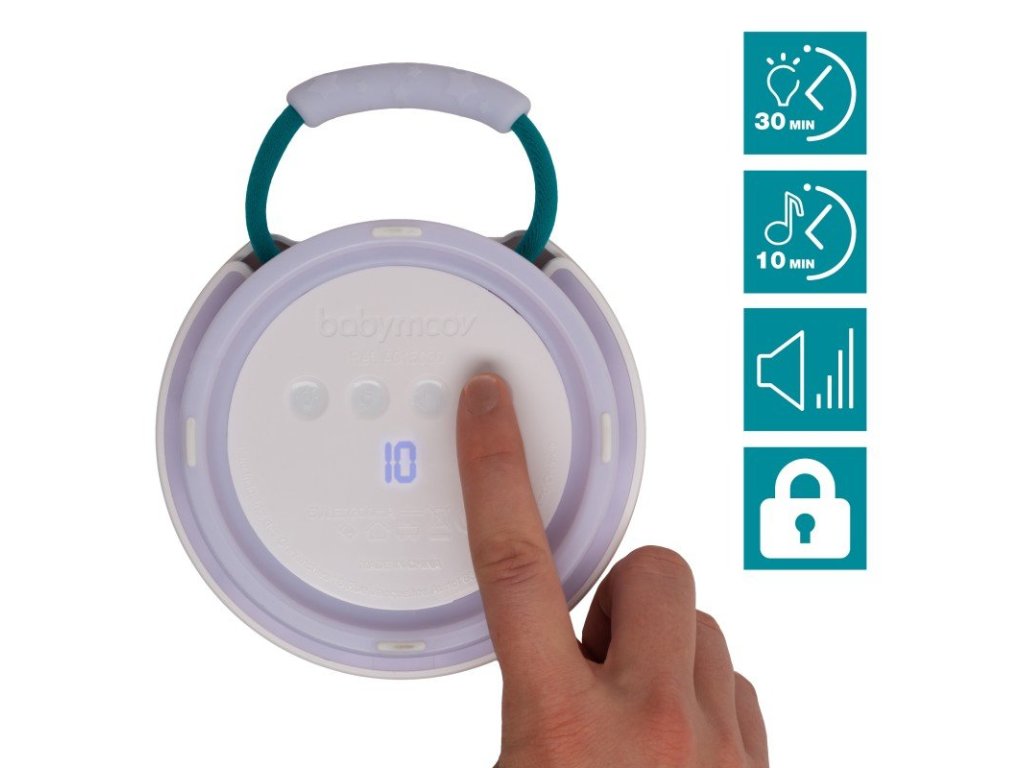 Časovač: 1 – 12 hodín, uspávanky 10 minút, svetlo 30 minút