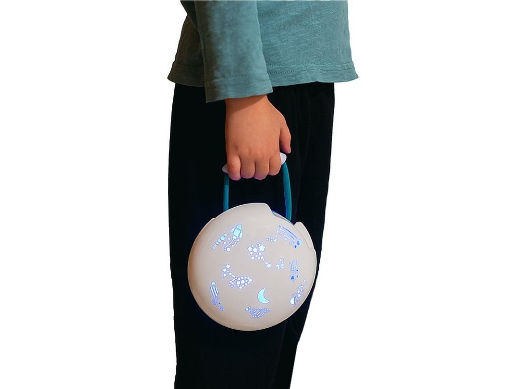 DREAMY je veľmi ľahká a vybavená textilným pútkom na prenášanie. Má dobíjaciu lítiovú batériu a nabíja sa cez micro-USB, takže ju môžete používať kdekoľvek – doma, na cestách či pri pobytoch u starých rodičov.