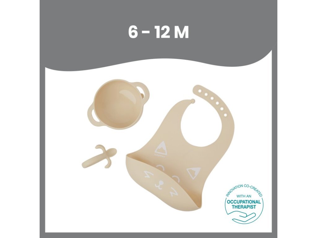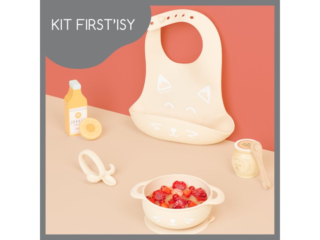 FIRST´ISY KIT je premyslená detská jedálenská súprava, ktorá uľahčí začiatky s prikrmovaním a podporí dieťa pri prvých pokusoch o samostatné jedenie. Obsahuje misku s prísavkou, mäkkú silikónovú lyžičku a praktický podbradník s vreckom – všetko navrhnuté špeciálne pre deti vo veku 6 až 12 mesiacov.