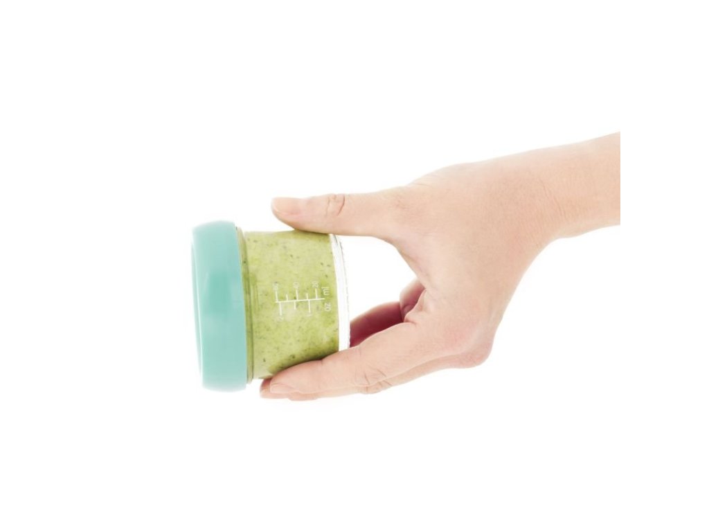 Sada obsahuje 4 misky s objemom 100 ml a 4 misky s objemom 220 ml, takže si môžete jednoducho prispôsobiť veľkosť porcie podľa veku dieťaťa či druhu jedla. Každá miska je vybavená skrutkovacím viečkom so silikónovým tesnením pre bezpečné uzavretie.