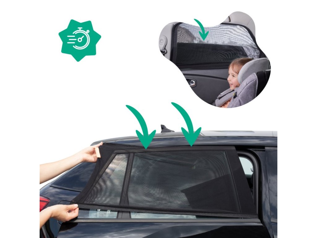 Navliekacia slnečná clona 2ks poskytuje dvojitú funkciu – chráni deti aj dospelých pred intenzívnym slnečným žiarením a zároveň funguje ako ochrana proti hmyzu, keď je okno stiahnuté. Vďaka tomu si môžete užívať jazdu autom v pohodlí a bezpečí.