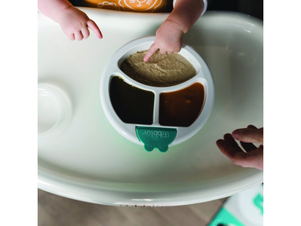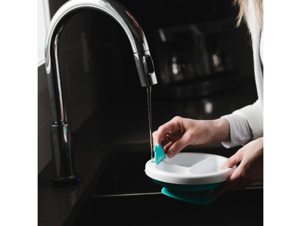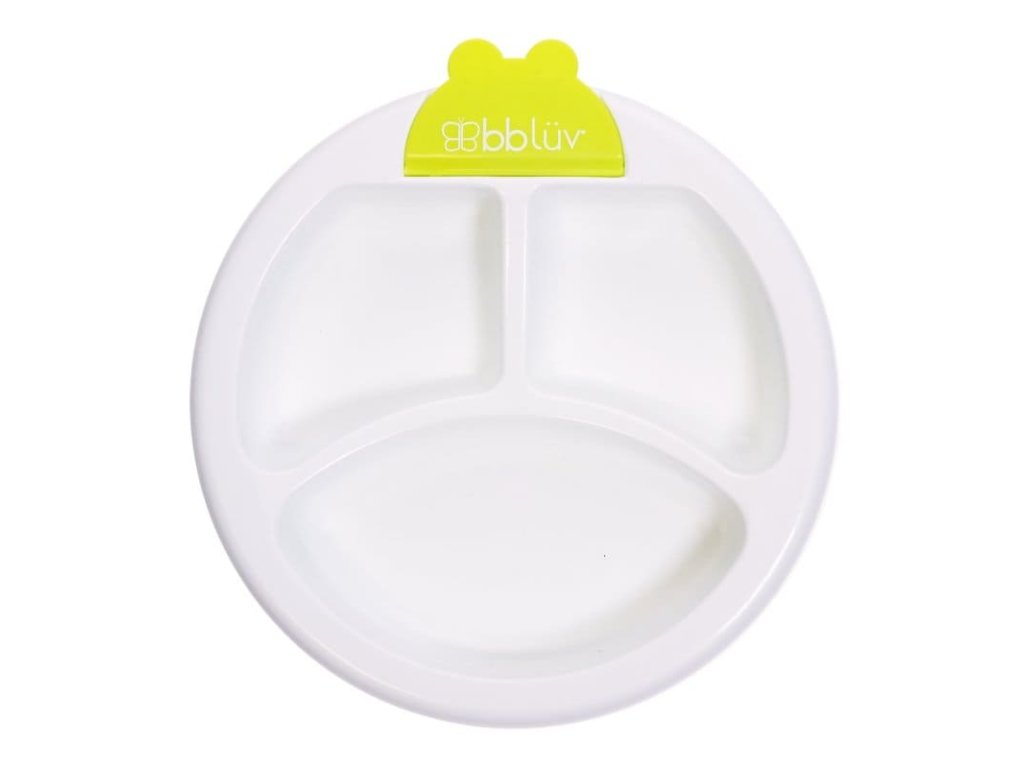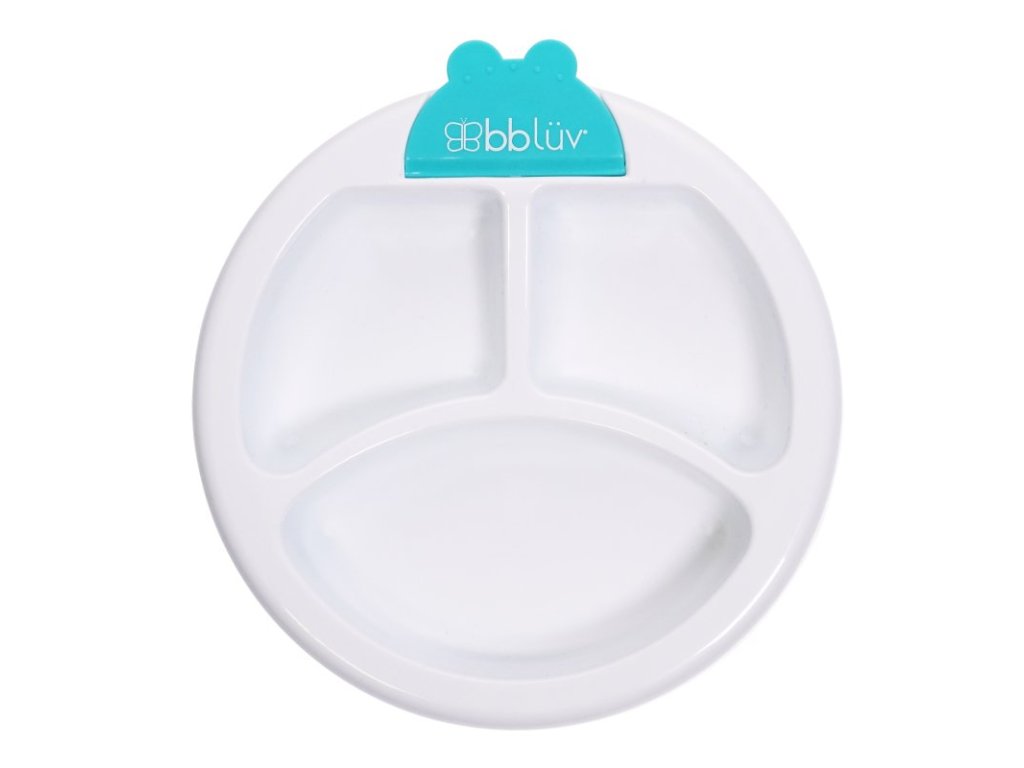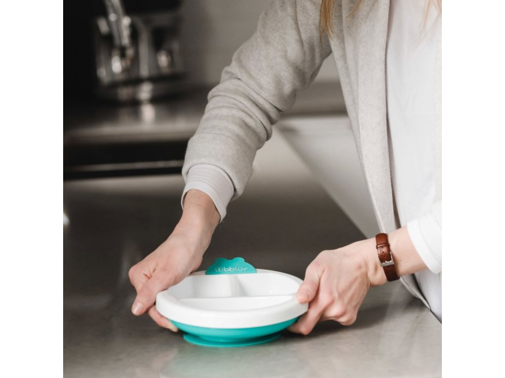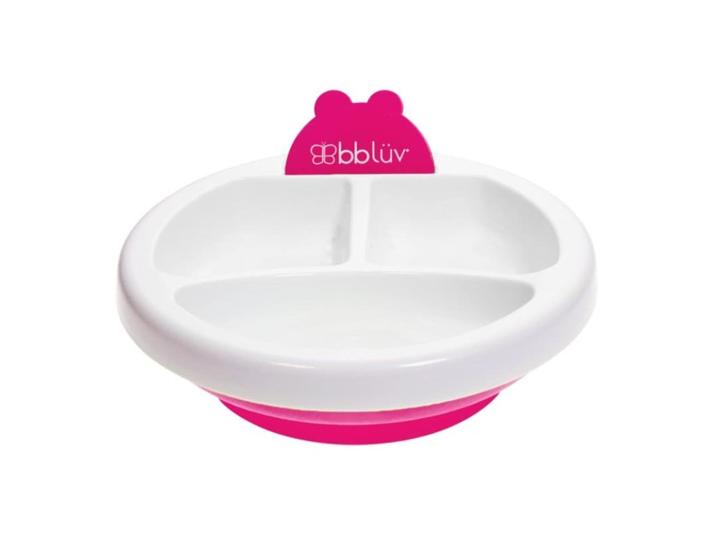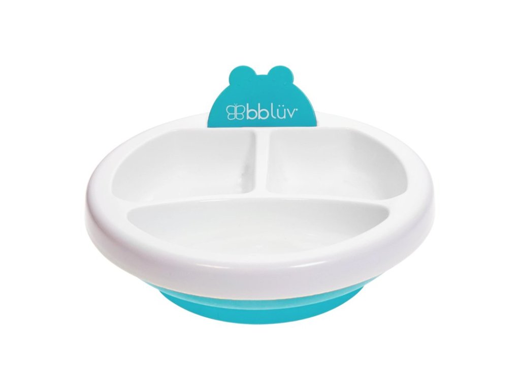 Tri oddelené časti umožňujú servírovať rôzne druhy jedál bez miešania chutí. Vyvýšené okraje uľahčujú naberanie a podporujú samostatné jedenie. Veľká prísavka na spodnej strane pevne drží tanier na mieste a zabraňuje jeho prevráteniu.