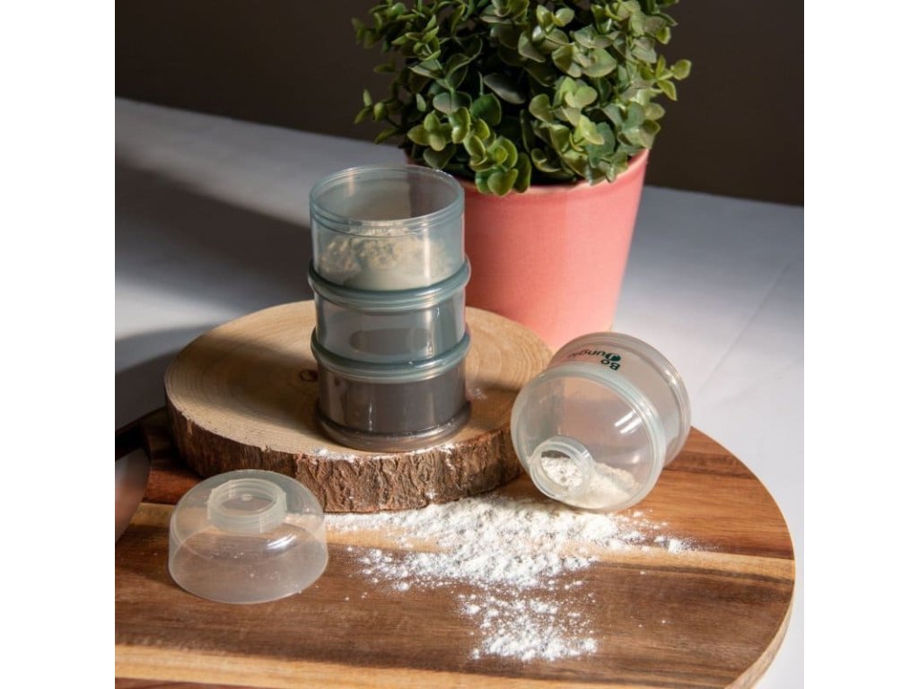 Dávkovač sušeného mlieka B-Dose je neoceniteľnou pomôckou pre všetkých rodičov, ktorí chcú mať detskú výživu pripravenú rýchlo, prehľadne a bez stresu. So štyrmi samostatnými priehradkami umožňuje pohodlné dávkovanie sušeného mlieka, kaše či iných pochúťok – ideálne na cestovanie aj na domáce použitie.