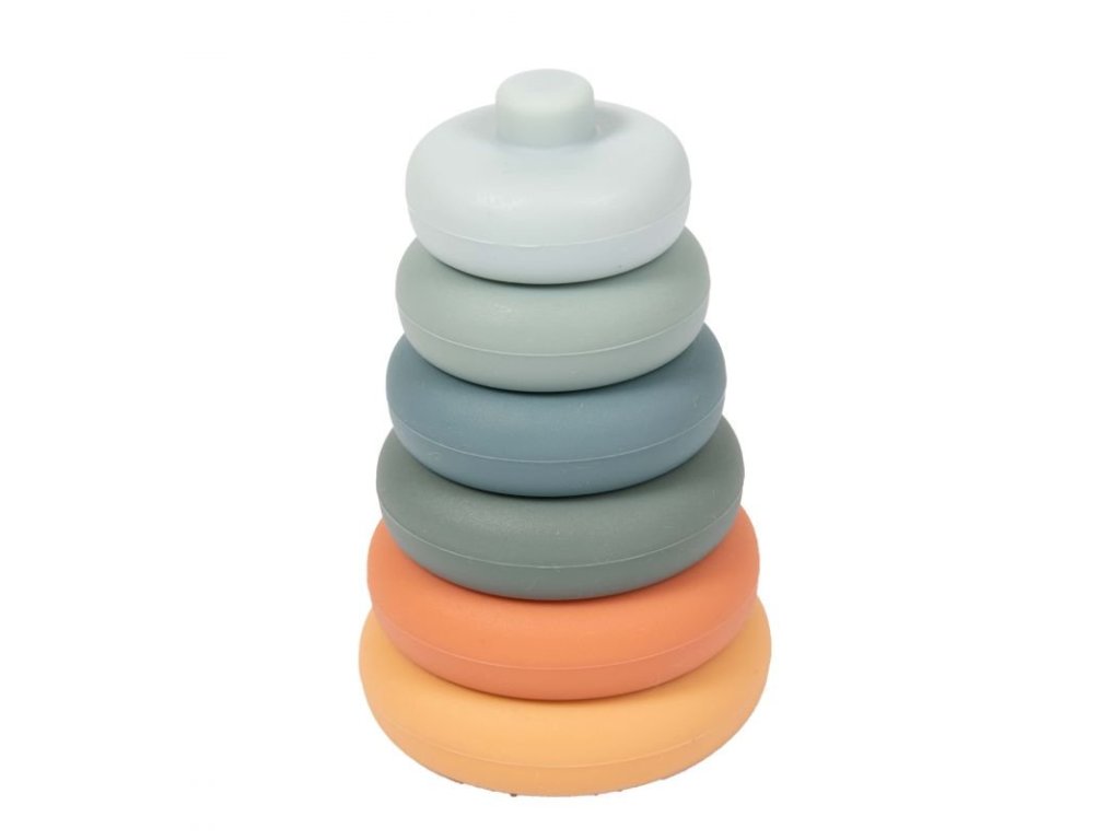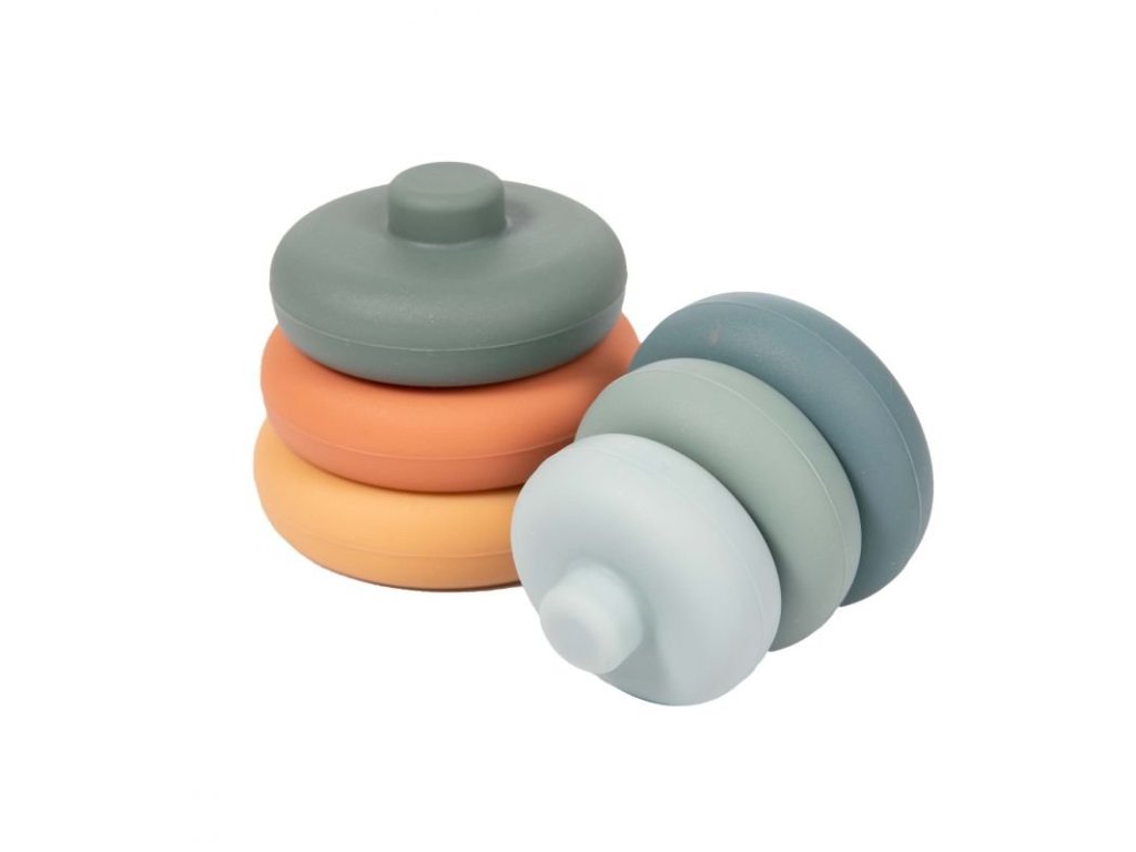 Silikónová stohovacia hryzátka B-Silicone Rounds spájajú úľavu pri prerezávaní prvých zúbkov s hrou, ktorá rozvíja motorické schopnosti dieťaťa. Pastelové krúžky sú vyrobené zo 100% potravinárskeho silikónu a sú bezpečné už od narodenia.