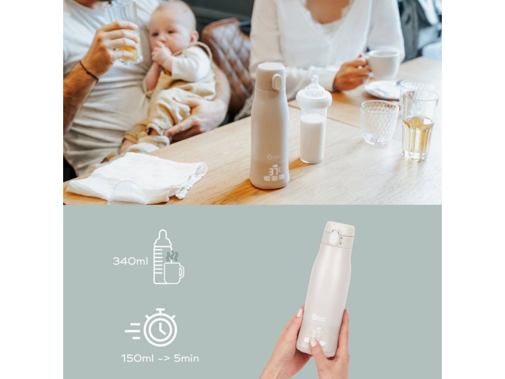 Zahreje 150 ml tekutiny na 37 °C už za 5 minút, pričom si môžete vybrať teplotu v rozsahu od 37 °C do 50 °C. Ohrievač má funkciu udržiavania teploty až 7 hodín, takže sa môžete venovať dieťaťu bez stresu a opakovaného ohrievania. Je vhodný na ohrev vody, materského alebo dojčenského mlieka, ale aj čaju či kávy pre dospelých.