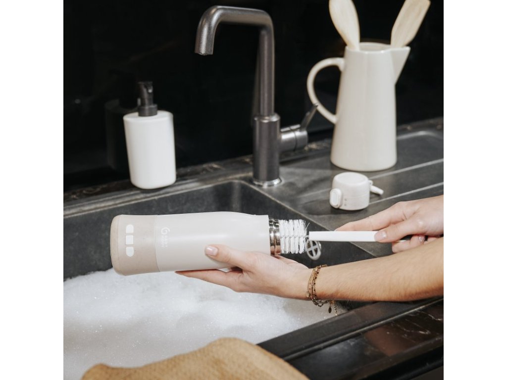Vďaka nerezovej vykurovacej časti, ergonomickému tvaru a praktickému silikónovému pútku je manipulácia s ohrievačom jednoduchá a bezpečná. Elegantný dizajn v odtieni Mineral Beige alebo Sage Green navyše ladí s moderným životným štýlom rodičov.