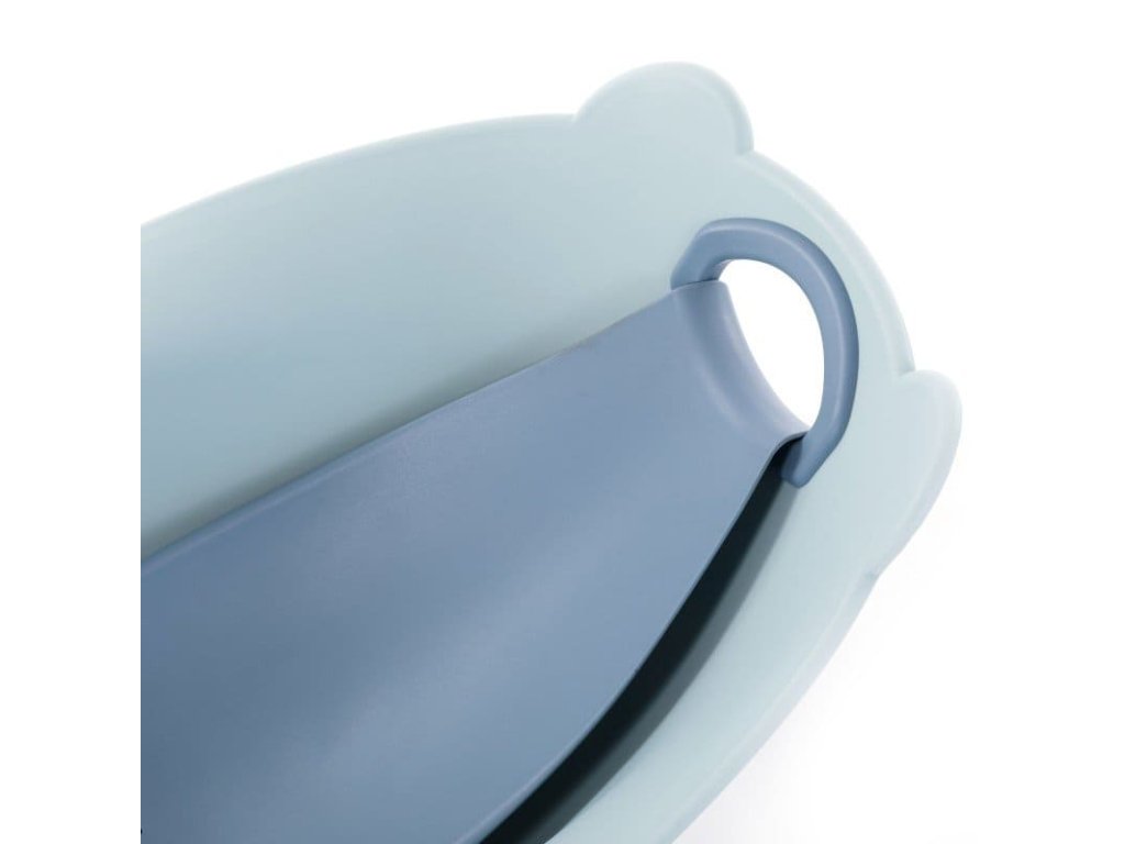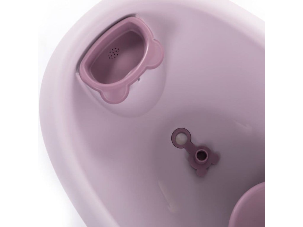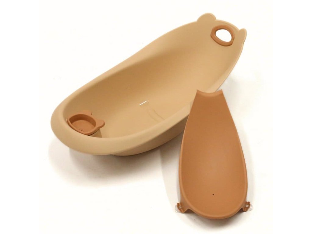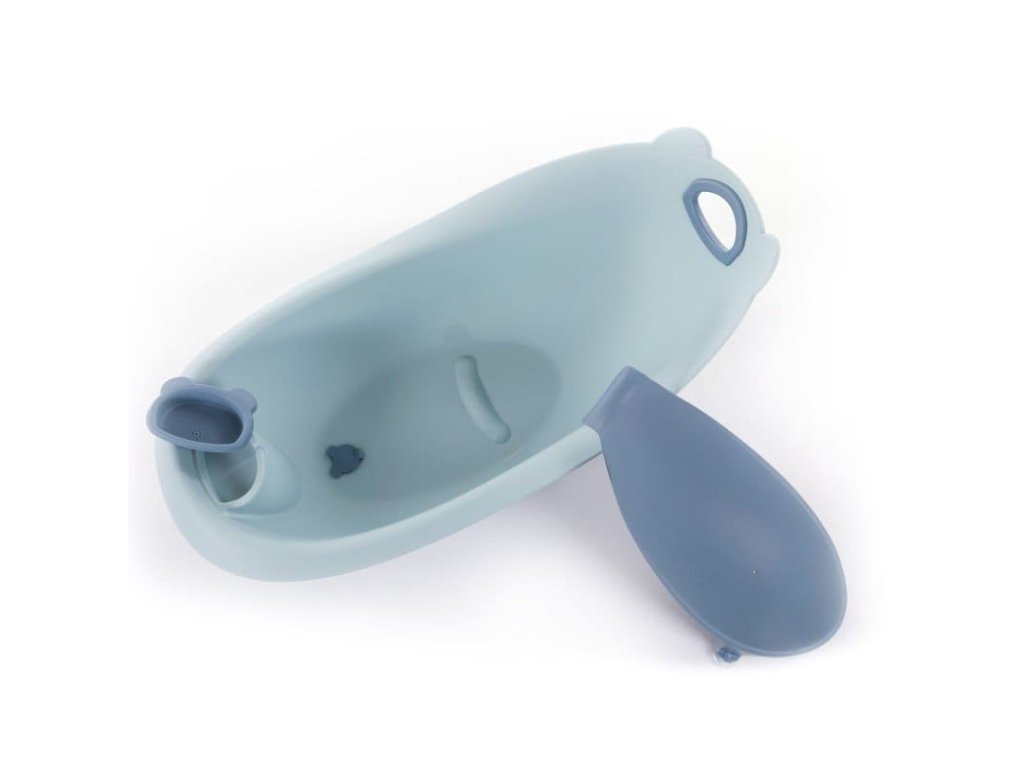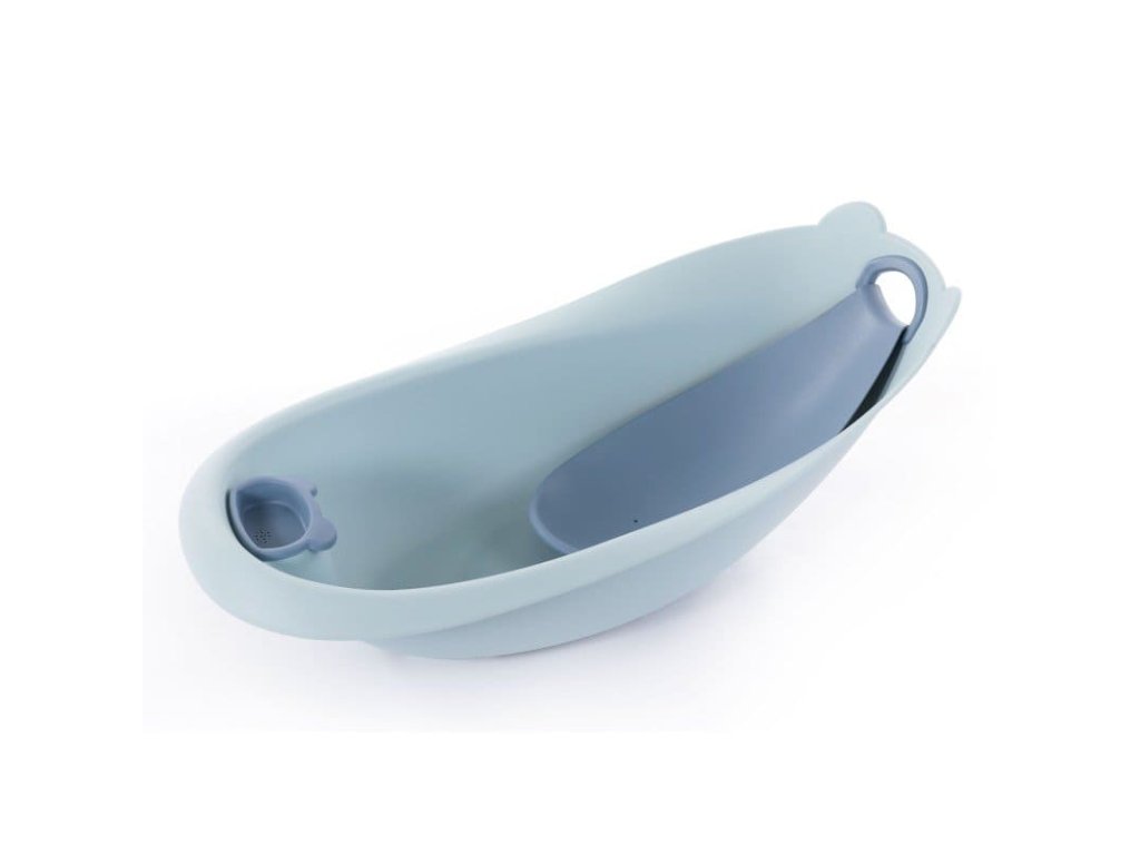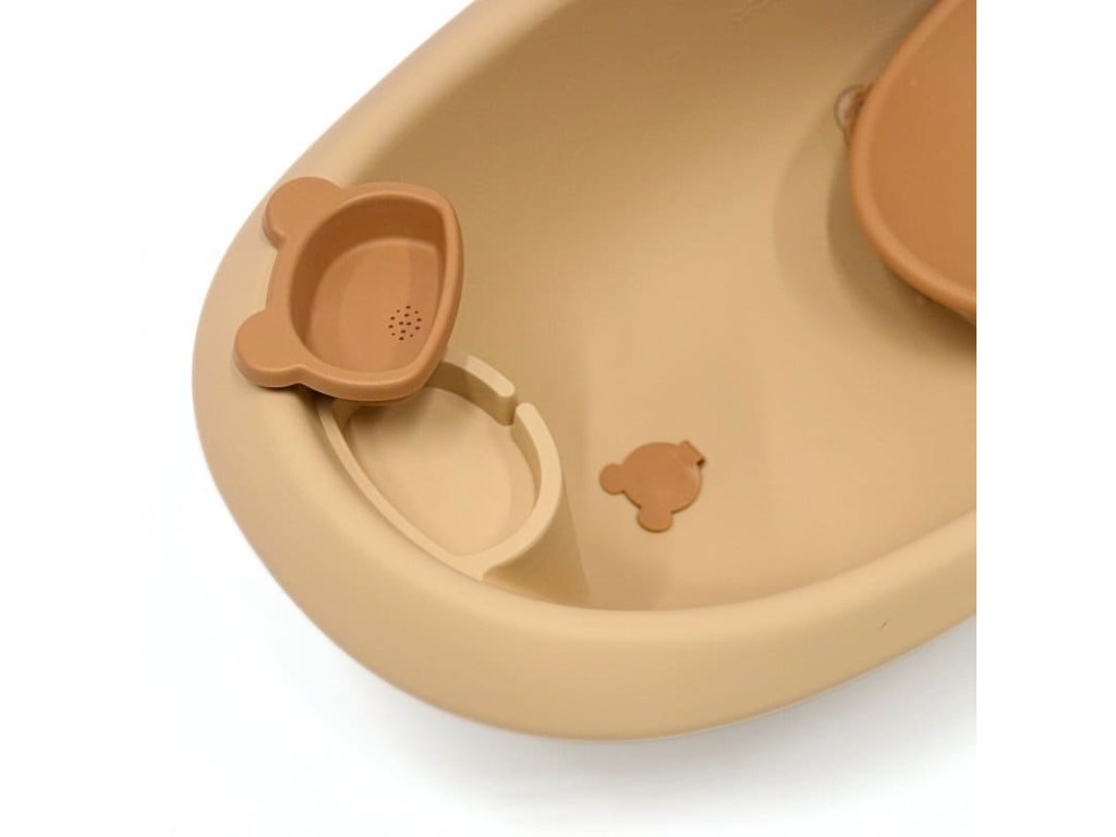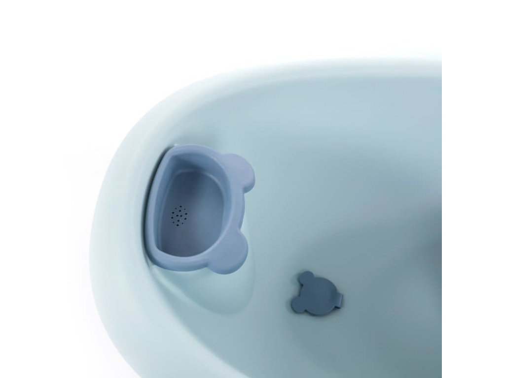 Súčasťou balenia je aj vyberateľné ležadlo s prísavkami, ktoré poskytuje oporu najmenším deťom počas prvých mesiacov. Odnímateľná silikónová nádobka na mydlo z ekologického materiálu uľahčuje starostlivosť o hygienu, a praktická výpusť umožňuje pohodlné vypúšťanie vody po kúpaní.