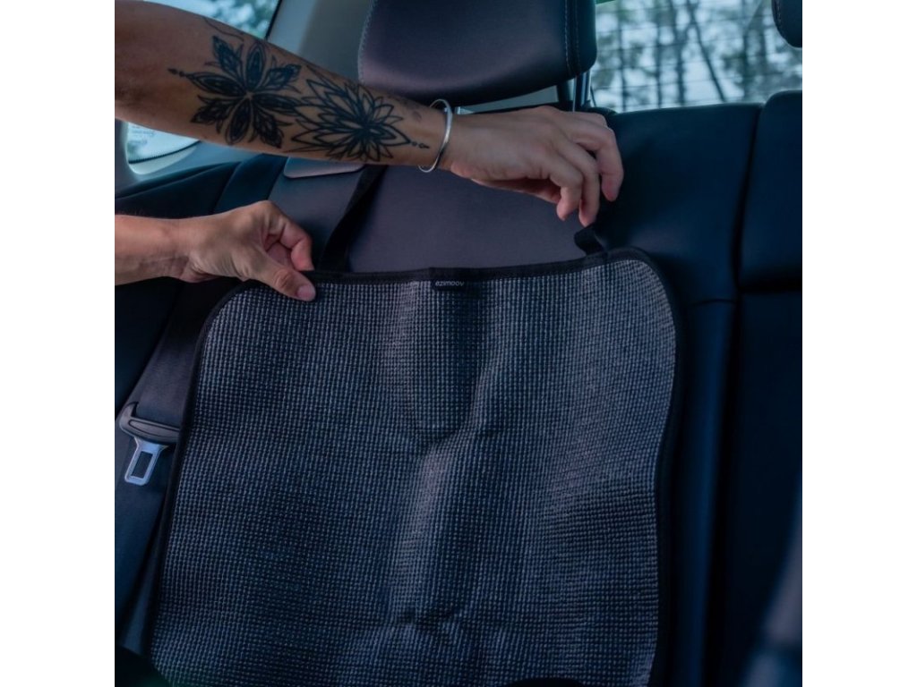 EZI MAT CLASSIC sa jednoducho inštaluje pomocou popruhov so sponou na opierku hlavy zadného autosedadla. Vyrobený je z pevného polyesteru, ktorý je extrémne odolný a vodeodolný, čo zabezpečuje dlhú životnosť. Údržba je veľmi jednoduchá – stačí ho utrieť vlhkou handričkou.