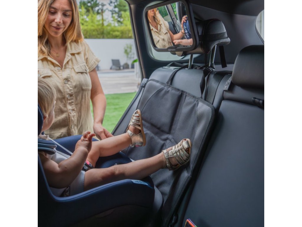EZI MAT PREMIUM sa ľahko upevňuje pomocou popruhov so sponou na opierku hlavy zadného autosedadla. Vyrobený je z kvalitného polyesteru, ktorý je pevný, odolný a vodeodolný. Údržba je jednoduchá – povrch stačí utrieť vlhkou handričkou.