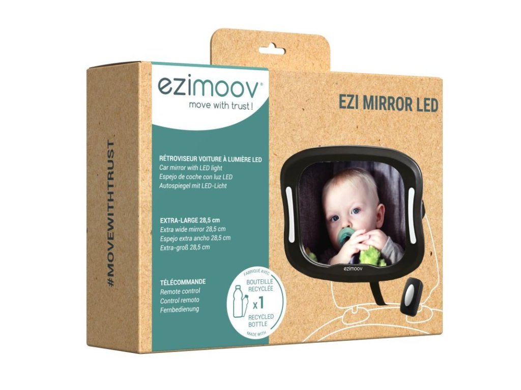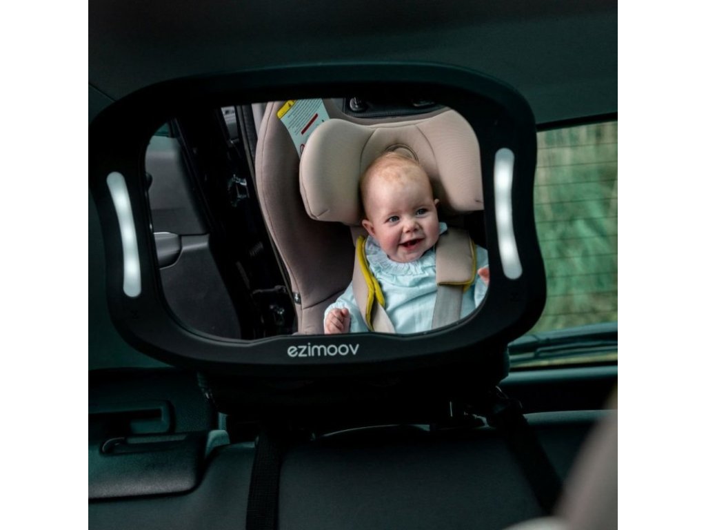 EZI MIRROR LED je extra veľké zrkadlo, ktoré umožňuje rodičom mať dieťa v autosedačke proti smeru jazdy stále na očiach. Vďaka integrovanému LED osvetleniu je vhodné aj na nočné jazdy – jemné svetlo neoslňuje dieťa a rodičom poskytuje jasný pohľad.