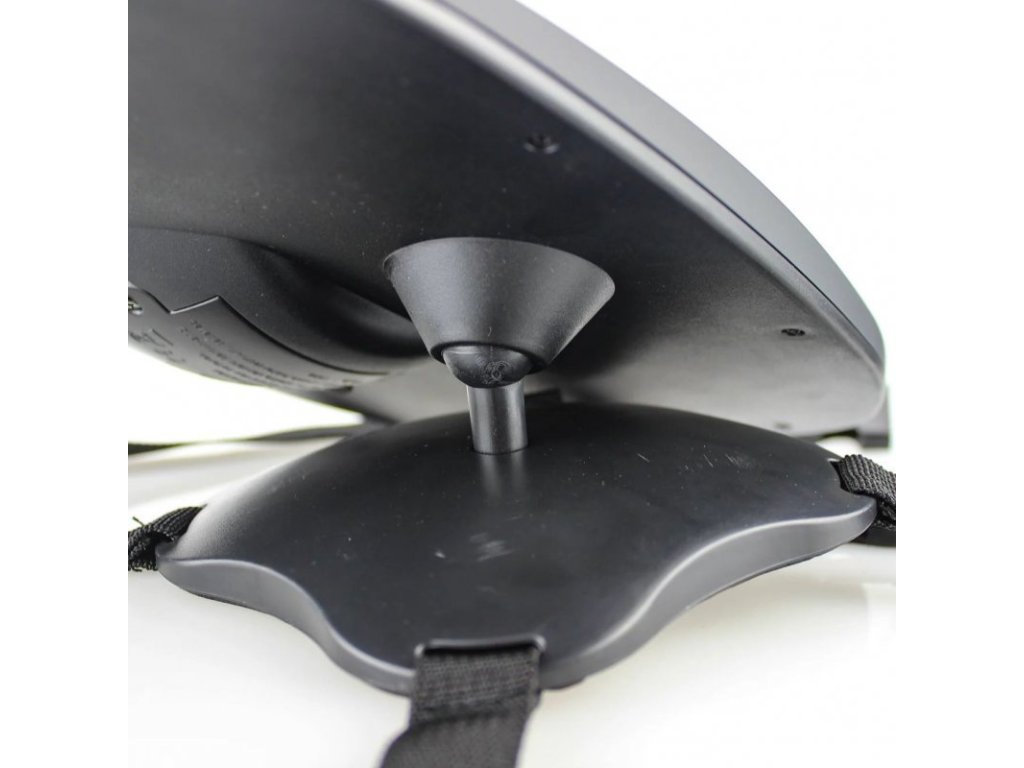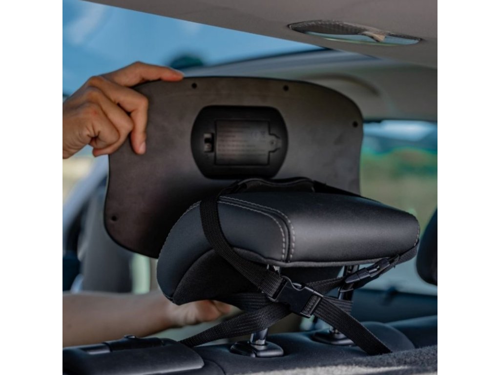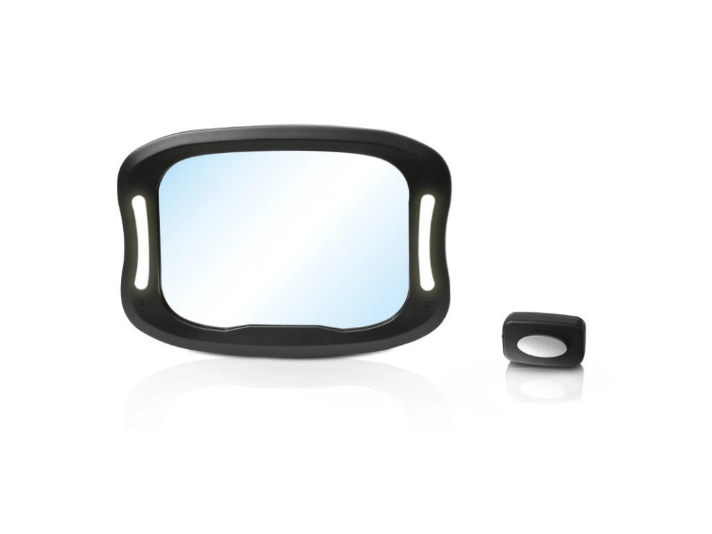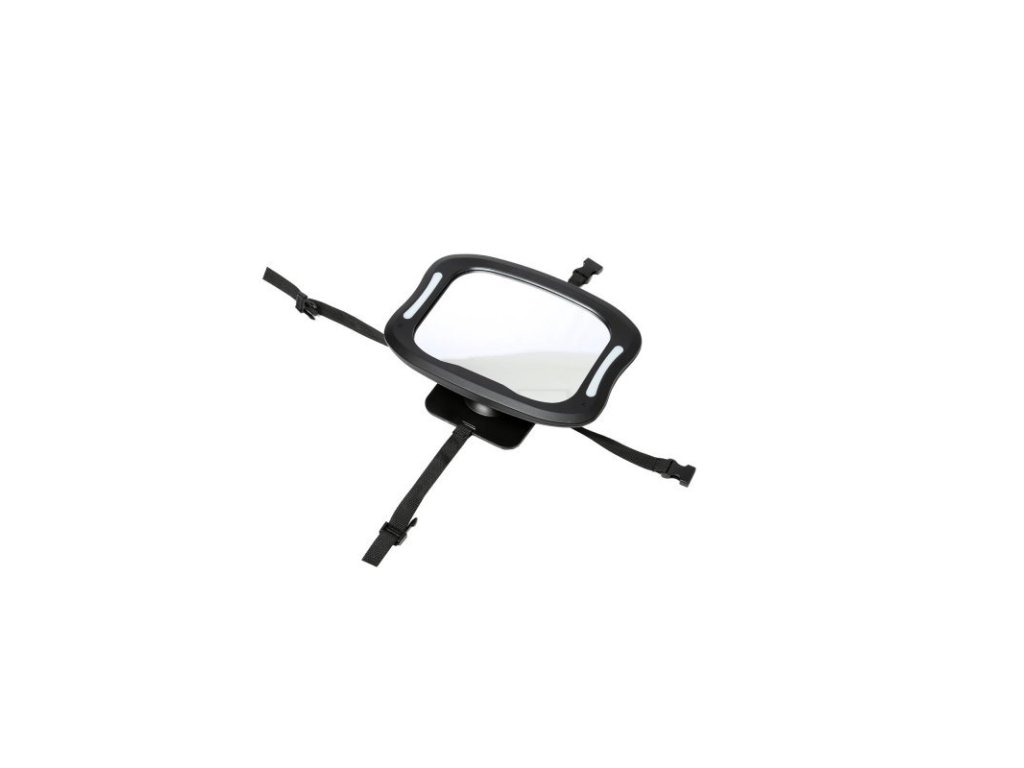 Zrkadlo sa upevňuje pomocou popruhov so sponou na opierku hlavy zadného autosedadla. O 360° otočný kĺb umožňuje prispôsobiť uhol presne podľa potreby, aby bol výhľad vždy optimálny. LED osvetlenie sa pohodlne ovláda diaľkovým ovládačom.
