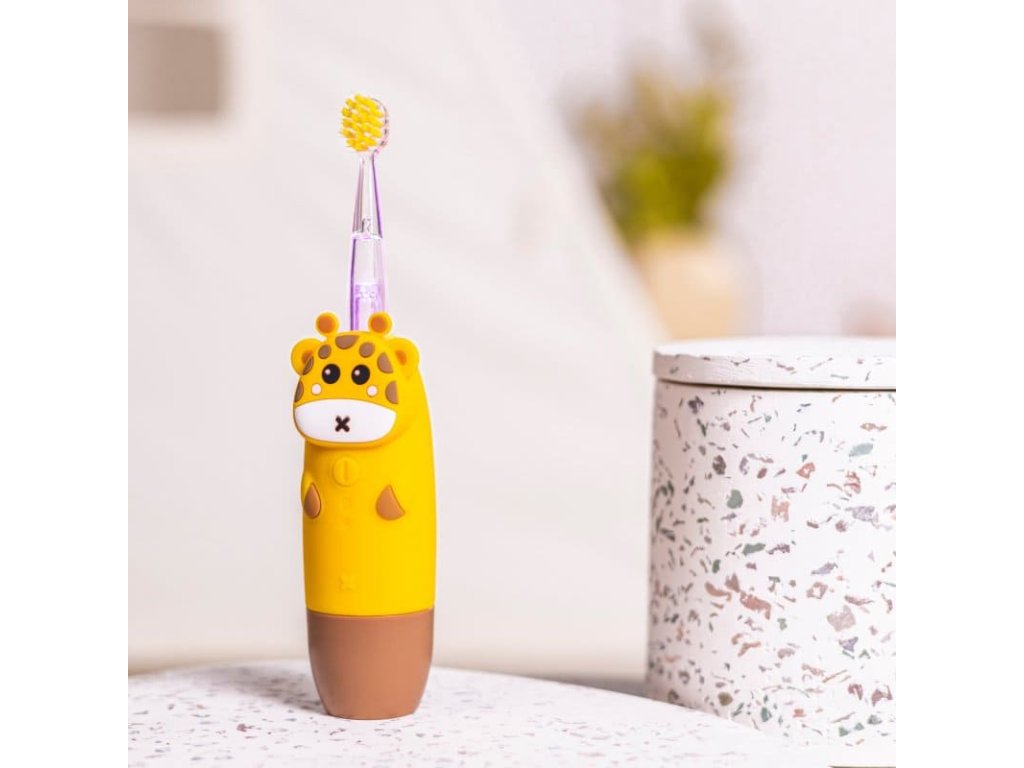 Zábavná a funkčná! Elektronická sonická zubná kefka GIOGiraffe v podobe milej žirafky mení čistenie zúbkov na obľúbenú súčasť každodennej rutiny. Je špeciálne navrhnutá pre citlivé detské ústa a jemné ďasná. Vďaka rôznym režimom vibrácií a svetelným efektom zaujme každé dieťa a zároveň poskytne dôkladné, ale šetrné čistenie.