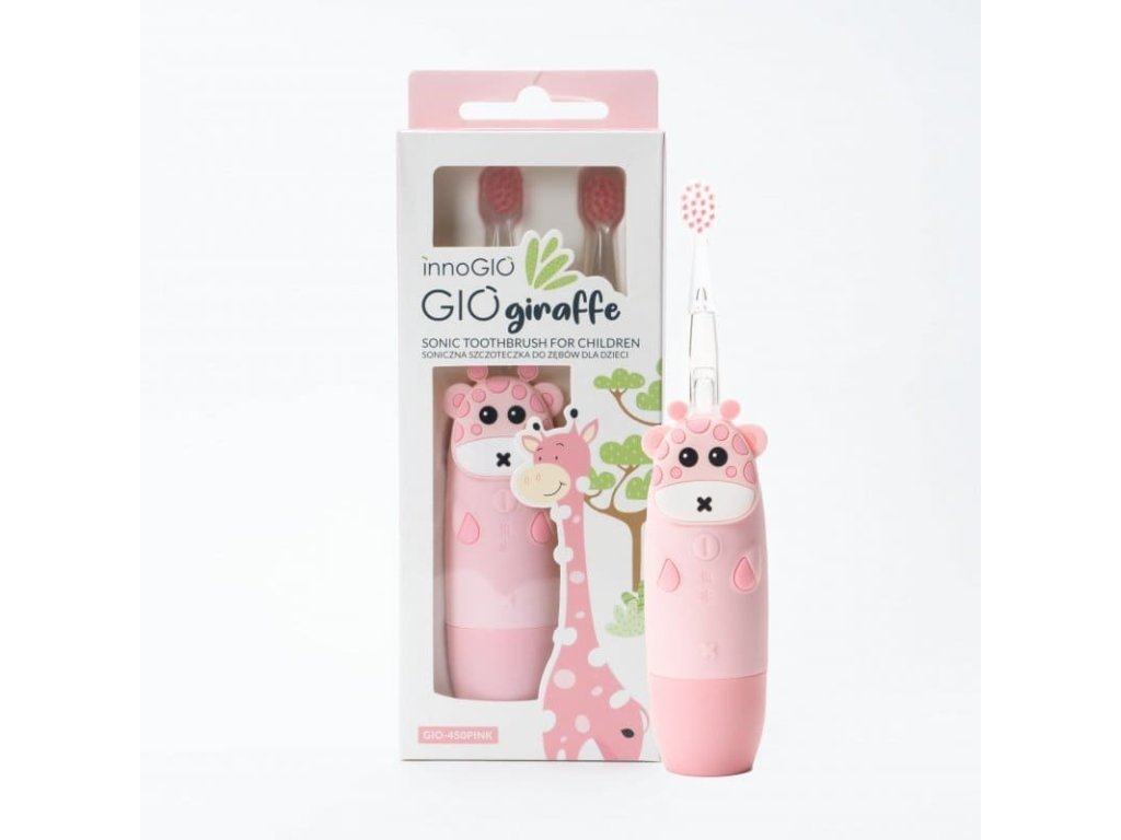 InnoGIO detská sonická zubná kefka GIOGiraffe – svetelné efekty, 4 režimy, od 2 rokov