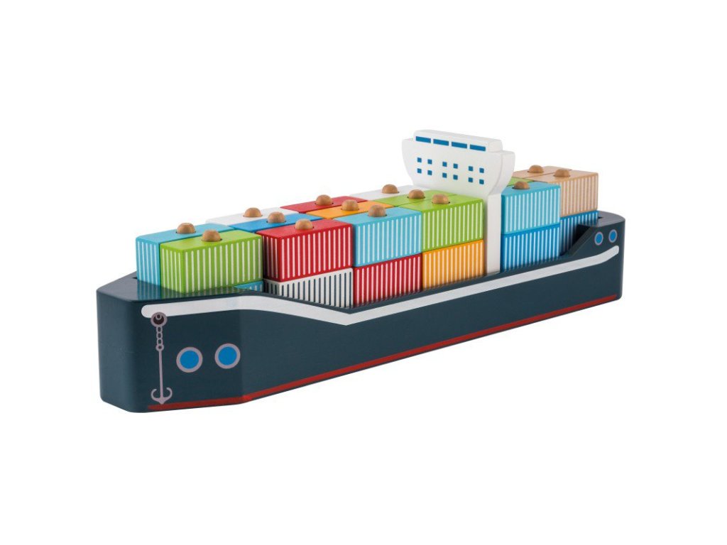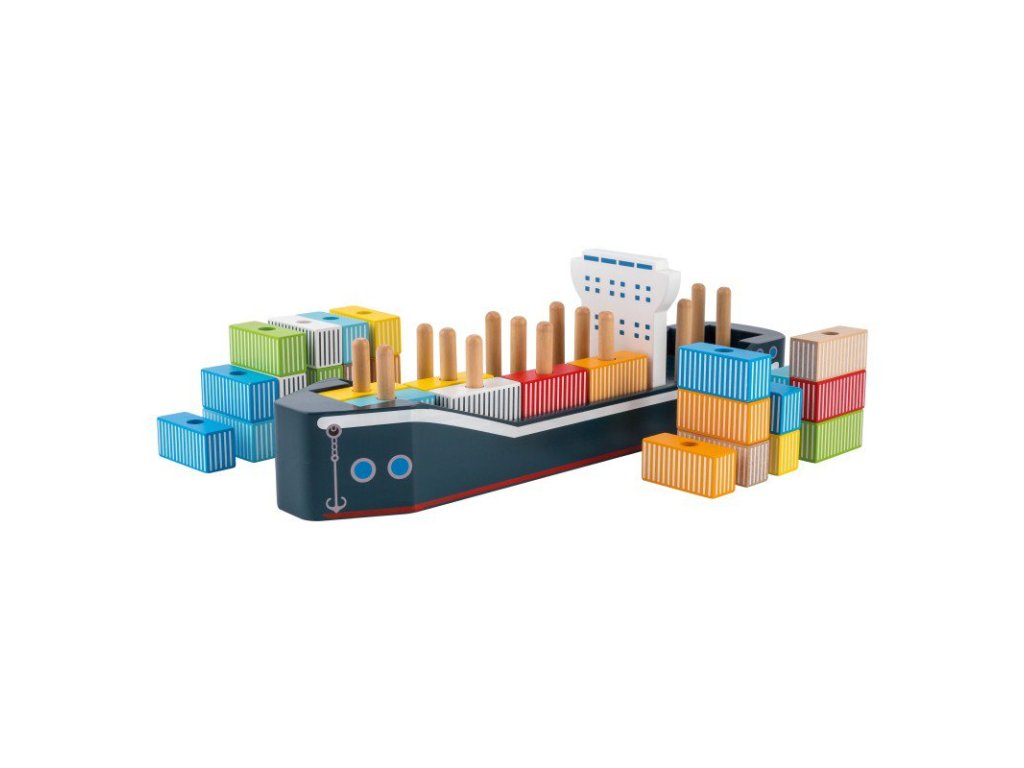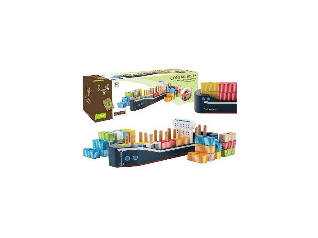 Jouéco Drevená kontajnerová loď – 34 dielikov, vhodná od 24 mesiacov