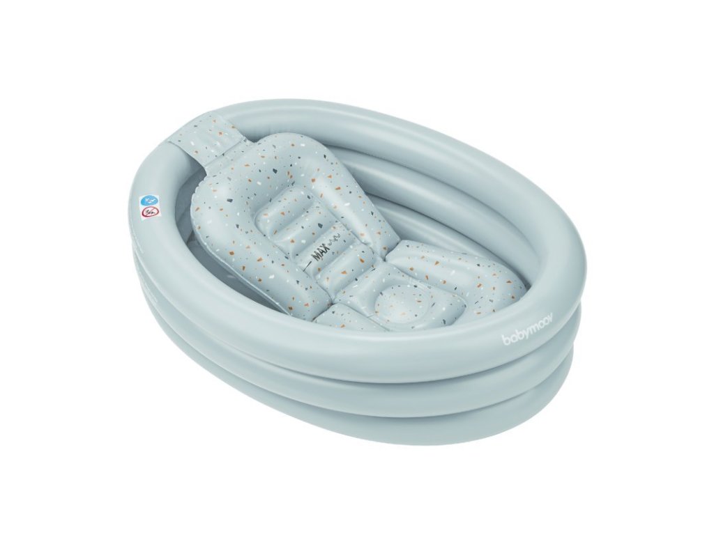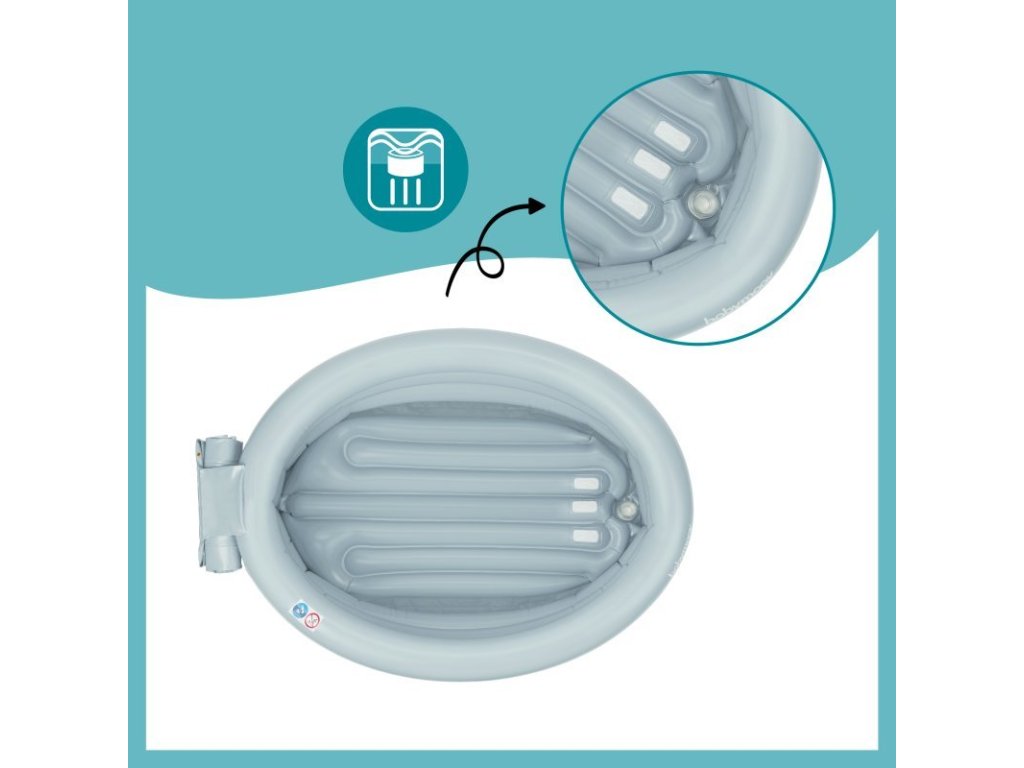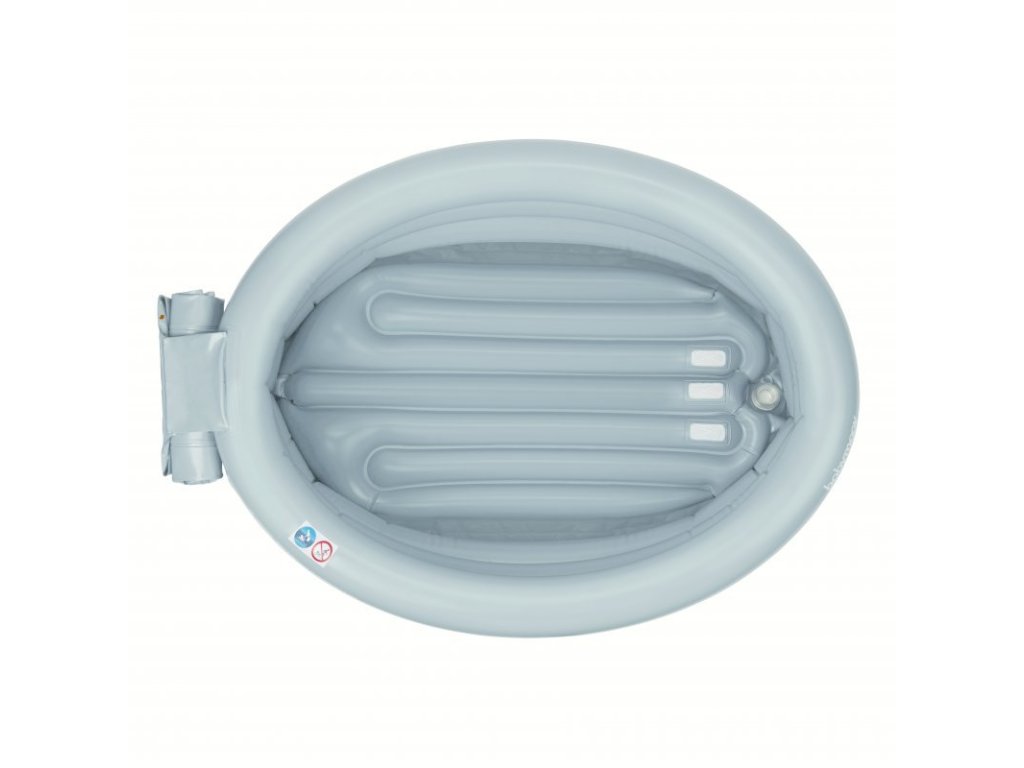 Pre novorodencov slúži integrované nafukovacie lehátko, ktoré udrží bábätko v pohodlnej polohe počas kúpania. Keď dieťatko vyrastie a dokáže samostatne sedieť, lehátko jednoducho vyfúknete, zrolujete a umiestnite na vonkajšiu stranu vaničky. Vaničku tak využijete ešte dlhšie.