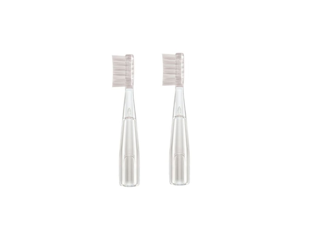 Sada obsahuje 2 kusy náhradných hlavíc, ktoré ľahko vymeníte jednoduchým nasadením na telo kefky. Vďaka transparentnému prevedeniu sa hodia ku všetkým farebným variantom sonických kefiek GIO.