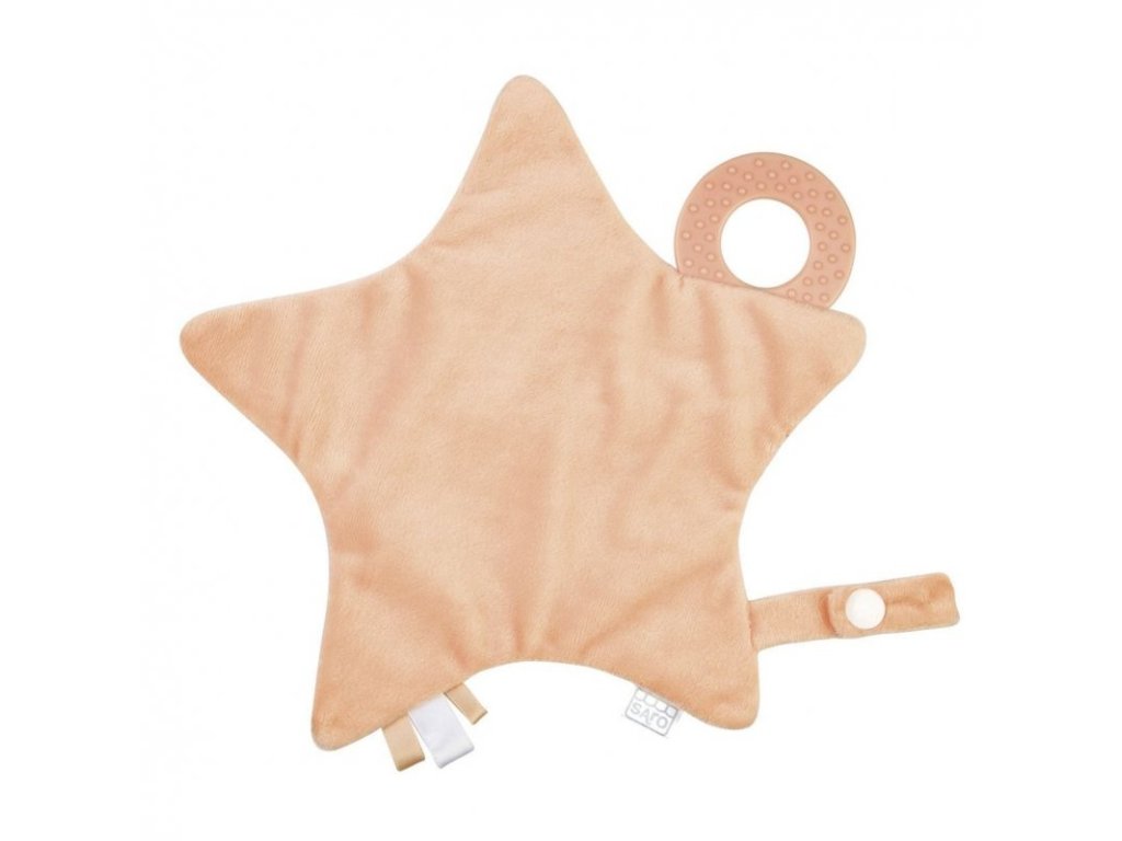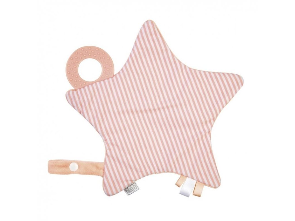 Dečka obsahuje aj textúrované hryzátko, ktoré pomáha uľaviť pri prerezávaní prvých zúbkov. Saténové stužky podporujú hmatový vývoj a vďaka pútku na uchytenie cumlíka ju môžete mať vždy prakticky po ruke.