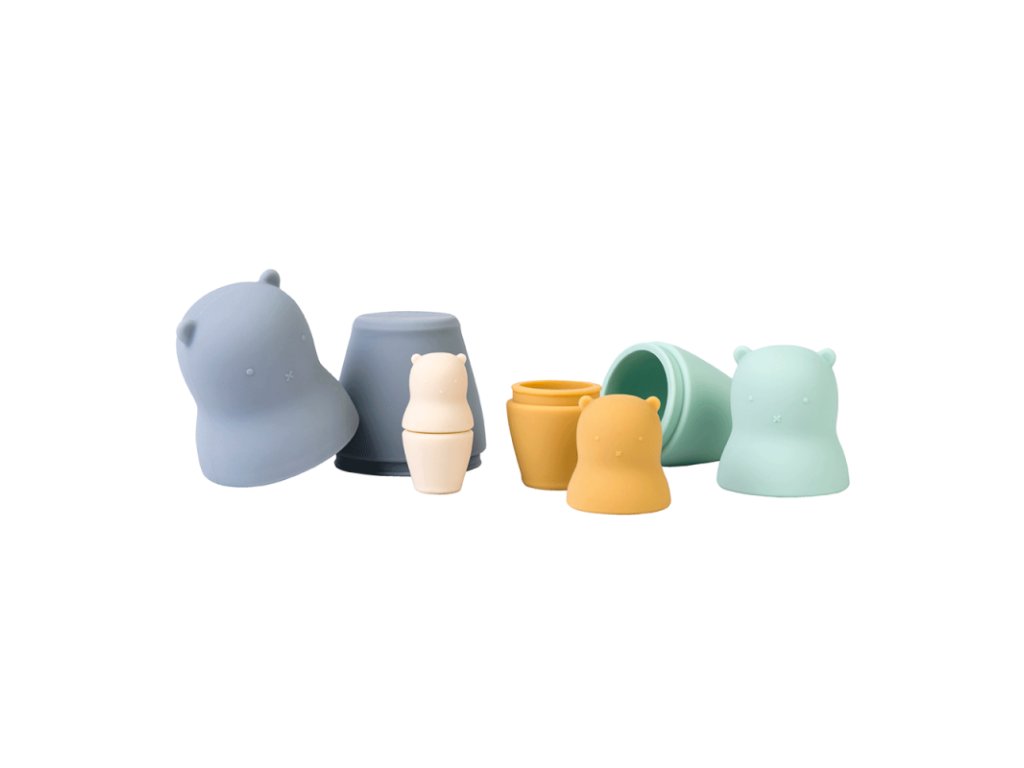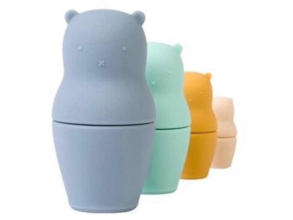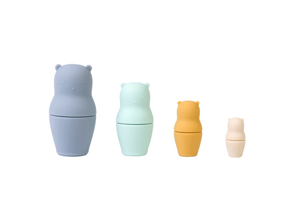 Didaktická silikónová Matrioška Mist Blue prináša obľúbenú hru na vkladanie v modernej, detskej podobe. Štyria roztomilí medvedíci z potravinárskeho silikónu sú inšpirovaní klasickou ruskou matrioškou a navrhnutí tak, aby sa dali jednoducho skladať jeden do druhého.