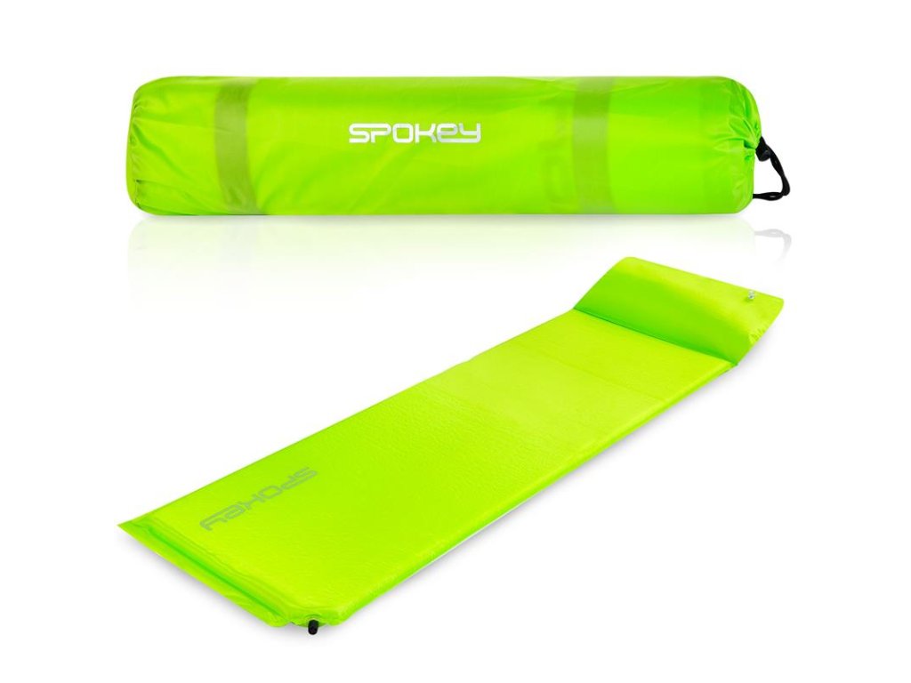 Spokey SAVORY PILLOW – samonafukovacia karimatka s integrovaným vankúšom, 186 x 50 x 2,5 cm, R-Value 3.6, zelená