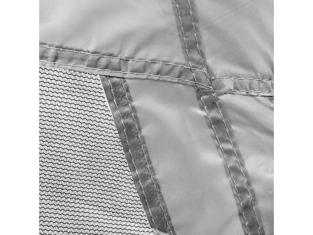 Stan je vybavený sieťovanými ventilačnými oknami, ktoré zabezpečujú plynulý prísun vzduchu a zabraňujú prehrievaniu priestoru. Vodotesná podlaha zase ochráni pred vlhkosťou z piesku či trávy – skvelé pre každého, kto chce mať pri relaxe maximálne pohodlie.
