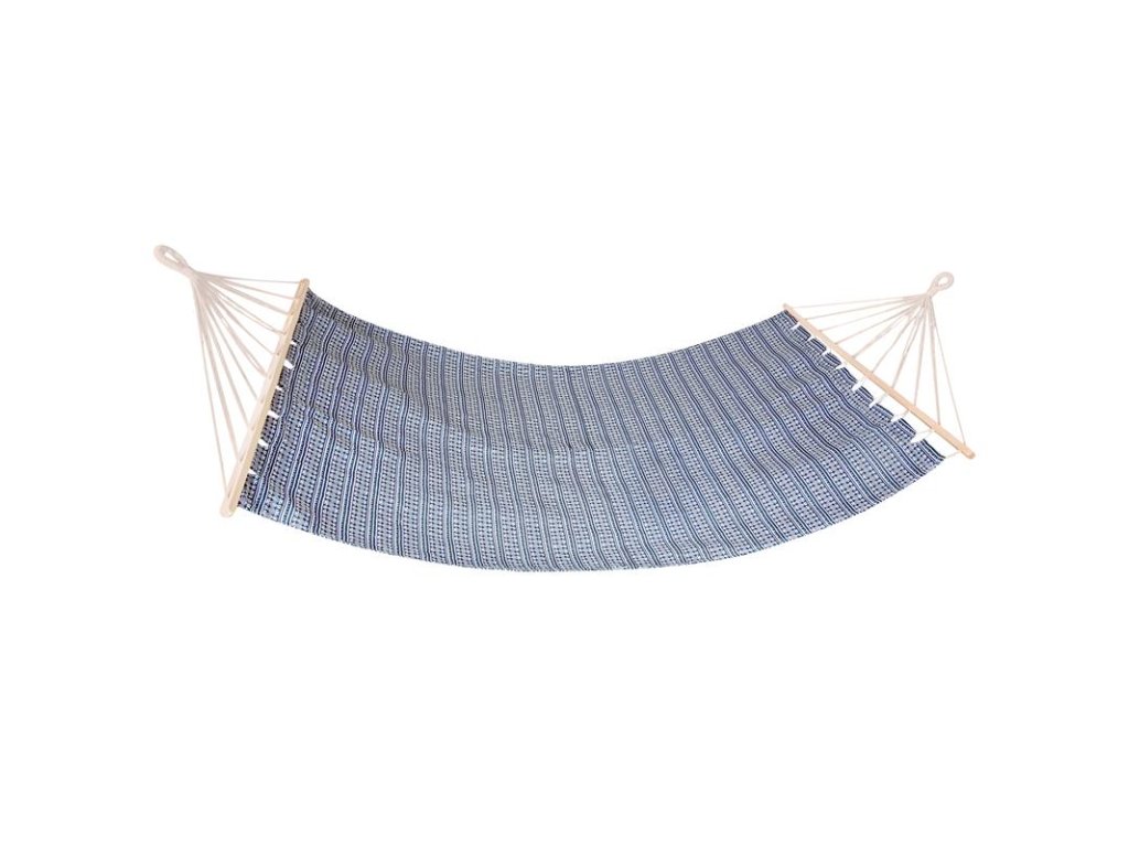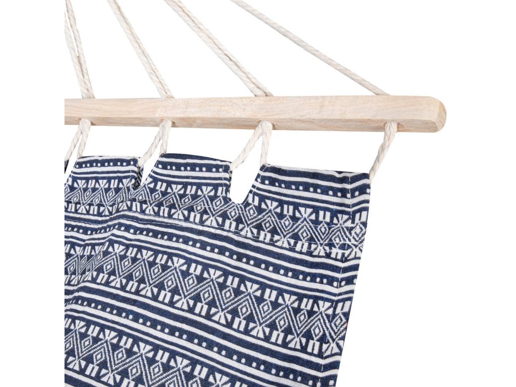 Spokey ZUNI – modro-biela bavlnená hojdacia sieť s drevenými výstuhami 200 × 100 cm