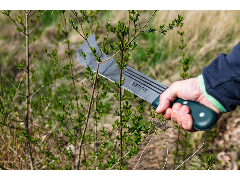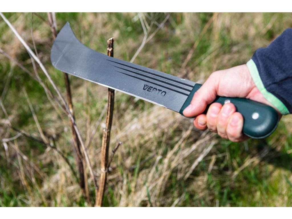 VERTO 15G191 je praktická a spoľahlivá záhradná mačeta, navrhnutá na efektívne prerezávanie hustej vegetácie, kríkov, tenších konárov či vysokej trávy. S celkovou dĺžkou 610 mm a kvalitne tvarovanou čepeľou z tvrdenej ocele ponúka vynikajúcu rovnováhu medzi silou a ovládateľnosťou pri práci.