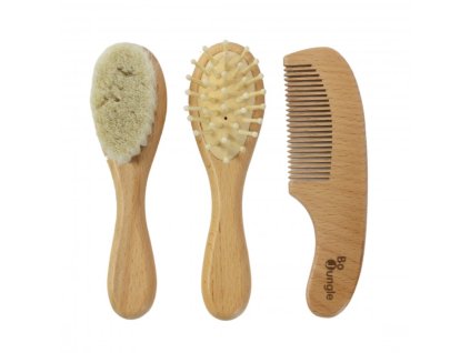 Sada Baby Care obsahuje 2 kefky a 1 hrebienok s drevenou rukoväťou. Jemné a šetrné k pokožke hlavy. Ergonomický dizajn. Vhodné od narodenia.