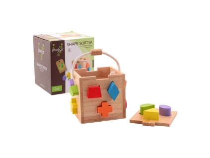 Drevená vkladačka v tvare kocky s 13 rôznymi tvarmi. Rozmer: 15 × 15 × 15 cm. Pre deti od 12 mesiacov. Rozvíja motoriku a logické myslenie.