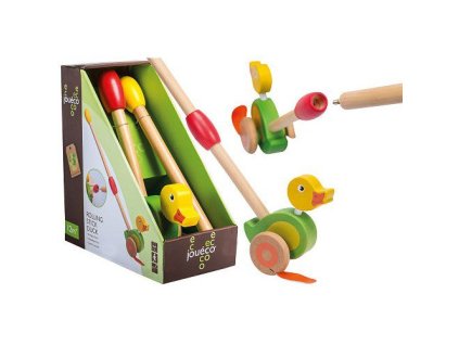Drevená hračka na tlačenie s kačkou. Rozmer: 57 × 9 × 17 cm. Pomáha s rozvojom koordinácie. Od 12 mesiacov.