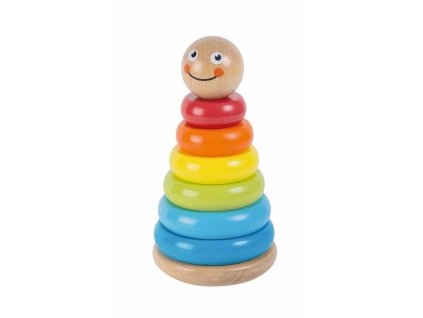 Stohovacia drevená veža pre najmenších. Rozmery balenia: 10,5 × 10,5 × 20 cm. Vhodná od 12 mesiacov. Pomáha rozvíjať motoriku a učenie farieb.
