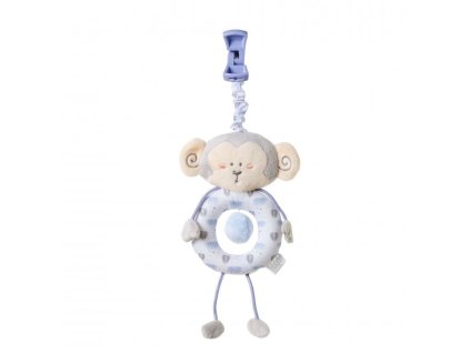 Plyšová hračka v tvare opičky s klipom na zavesenie. Obsahuje rolničku a hrkajúce korálky. Vhodná od narodenia.
